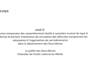 portant interdiction temporaire des rassemblements festifs à caractère musical de type free-party, rave party ou tecknival et portant interdiction de circulation des véhicules transportant les matériels nécessaires à l'organisation de ces évènements dans le département des Deux-Sèvres